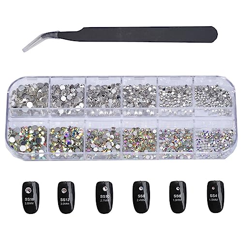 PLABBDPL 1440 Pcs Strass Cristallo, Bianco-AB, Nail Art und Make Up, Di Strass In Cristallo Per Nail Art E Strass In Cristallo Trasparente 6 Dimensioni (1,5-3,8 Mm) Con Pinzetta Per Pick Up