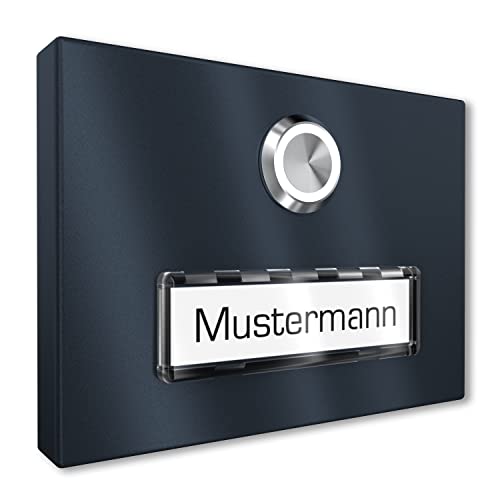 Placca campanello da esterno in acciaio inox V2A con targhetta illuminata di Graviers Design - verniciata a polvere in RAL 7016 - pulsante campanello a LED - Made in Germany
