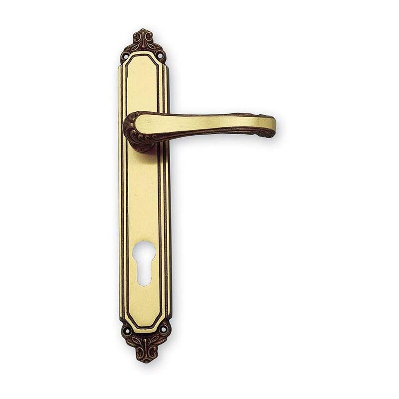 Maniglia in ottone flora, con placca q8 yale, colore ottone