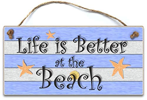 Placca in legno con decorazione marina con scritta “Life is Better at the beach”, accessorio da appendere in bagno (scritta in lingua inglese)