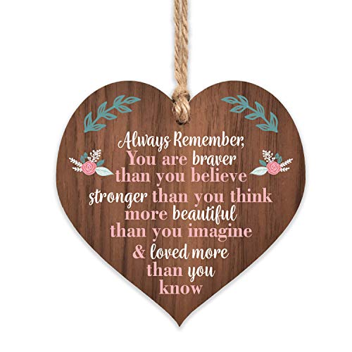 Placca in legno a forma di cuore con la scritta in lingua inglese You Are Braver, Stronger, Smarter & Beautiful