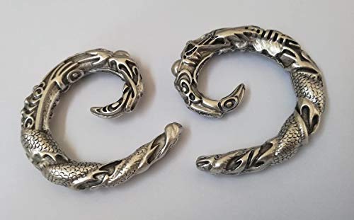 Pesi per lobi in Placcato Argento - Coppia Orecchini Big Dragons per espansione, Dilatatore Orecchio - Modello Unico Originale Artigianale Realizzato da artigiano Italiano - h 5 cm