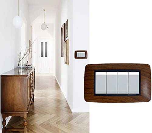 5PZ Placchetta interruttore copriprese effetto legno scuro 4 posti T-12