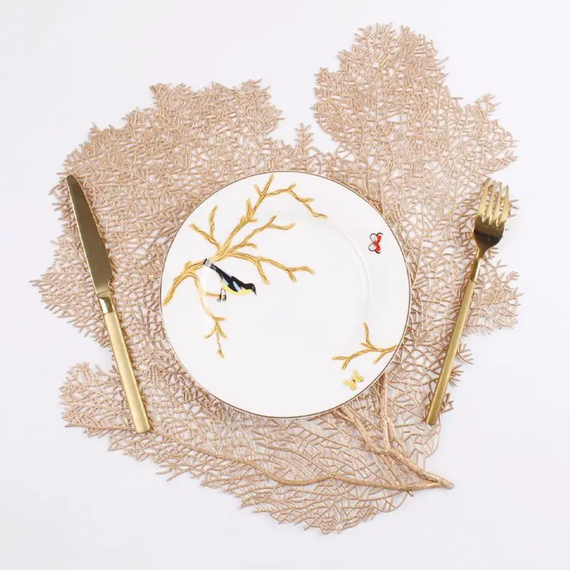 Placemats Elegant Style Coasters Hollow Out Pad Leaves Design Set of 4 50PB