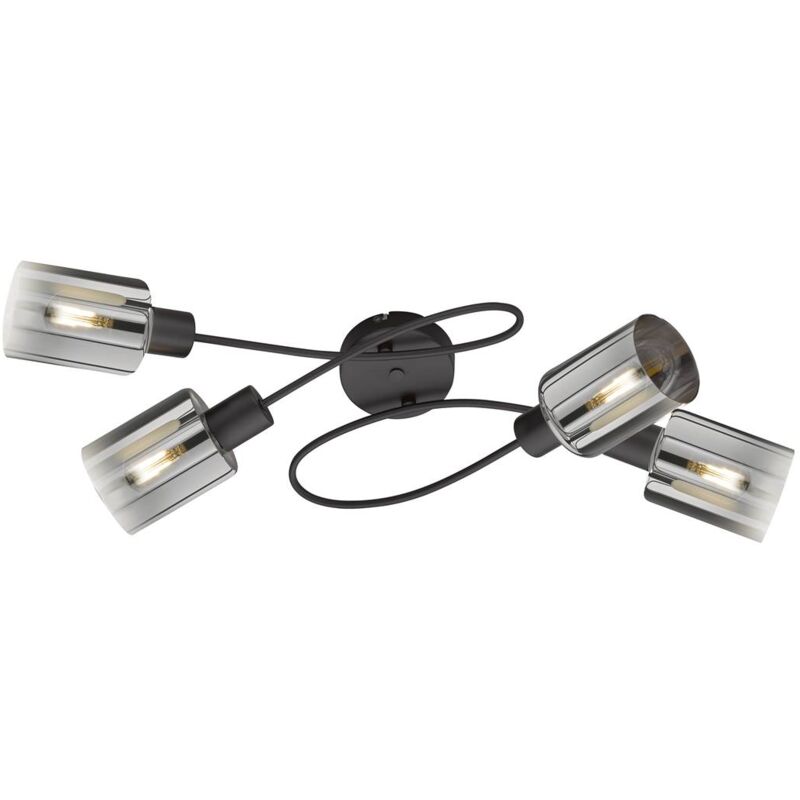 Lampada da soffitto ISKA E14 4x10W metallo nero sabbia, vetro fumé H: 22cm L: 79cm L: 37cm dimmerabile Dimensioni in mm: Lunghezza: 790, larghezza: 370, altezza: 220, Peso in kg: 1,35 Tipo di lampadina/ attacco: E14 Lampadine incluse: NO Potenza in Watt: 4x10 Grado di protezione: IP20 Dimmerabile: SÌ Interruttore: NO Materiale alloggiamento: metallo Colore alloggiamento: nero sabbia Materiale vetro/paralume: Vetro Colore vetro/paralume: da fumé a trasparente
