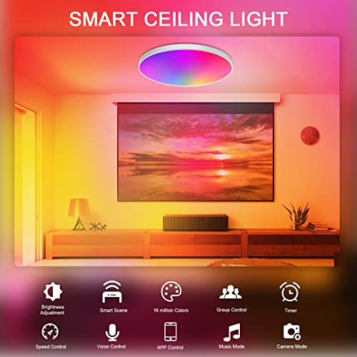 【PLAFONIERA LED SOFFITTO】: Lampada da soffitto per camerette con telecomando e controllo APP. L'APP consente di regolare facilmente il colore e la luminosità della luce. Inoltre, le plafoniere a led sono compatibili con Alexa, Google Home, Siri per il controllo vocale.
