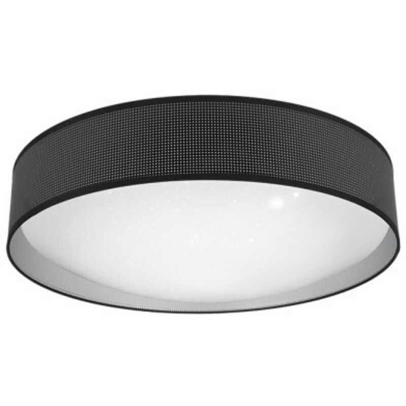 Lampada da soffitto della serie ANASTASIA colore NERO con paralume in tessuto traforato colore NERO/ARGENTO. Questa plafoniera ha una TECNOLOGIA LED INTEGRATA con 96 watt di potenza, 7488 lumen e TRE TEMPERATURE DI LUCE SELEZIONABILI DALL'INTERRUTTORE DELLA LUCE (3000°K-4000°K-6500°K), luce calda, bianco neutro e bianco freddo, con cui fornisce un'ottima risparmio energetico. Spicca il suo schermo cilindrico forato con interno argentato. Stile molto originale e moderno, ideale per decorare e illuminare ingressi, soggiorni, uffici e camere da letto, aggiungendo raffinatezza alla stanza che illumina. Adatto a decori industriali, molto coerente anche con stili moderni che hanno come elemento caratterizzante l'illuminazione. Ha dimensioni di 17x59x59 centimetri. In questa serie possiamo trovare sospensioni di 50, 40 e 30 centimetri di diametro, due diverse dimensioni di piani da tavolo, applique, plafoniere da 48, 72 e 96 watt e la lampada da terra, tutte combinando il metallo delle loro