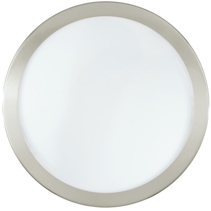 PLAFONIERA DA SOFFITTO IN STILE MODERNO, TONDA CON VETRO DIFFUSORE SATINATO E BORDINO IN ACCIAIO SATINATO;
