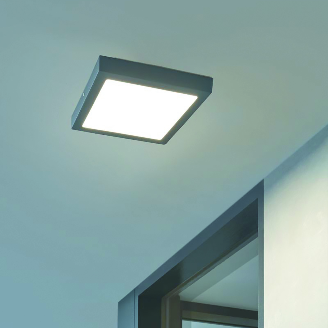 Struttura color grigio, diffusore in plastica colore bianco, dimensioni L 30 x H 30 cm, 1 lampadina inclusa, attacco lampadina integrato, wattaggio massimo 22 W. LED integrato. Ideale per illuminare il terrazzo, un balcone o una grande zona esterna