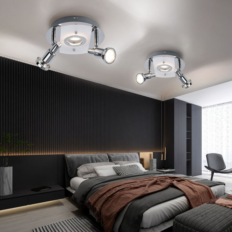 Descrizione Plafoniera a 3 fiamme con 2 faretti mobili. Grazie al design moderno di questa lampada, può essere integrata in quasi ogni spazio abitativo, ma questa lampada fa una bella figura soprattutto in bagno Grazie ai due faretti orientabili è possibile illuminare individualmente aree specifiche e porre accenti. Le due lampade LED per i faretti sono comprese nella fornitura. La sorgente luminosa a LED al centro della lampada è installata in modo permanente. Nella consegna sono incluse due luci! Lampada dettagli • Tipo di lampada: plafoniera • Materiale: metallo, plastica • Colore: cromo • Paralume: bianco • Grado di protezione: IP20 • Il faretto può essere orientato e ruotato • Diametro x altezza in cm: 20 x 11,5 • Prese: 2x GU10, 1x scheda LED • Lampadine GU10 incluse • Lampade LED installate permanentemente • Potenza lampadina GU10: 2x 3 watt • Potenza lampada LED: 1x 5 watt • Flusso luminoso GU10: 2x 250 lumen • Flusso luminoso LED: 1x 400 lumen • Colore della luce: bianco