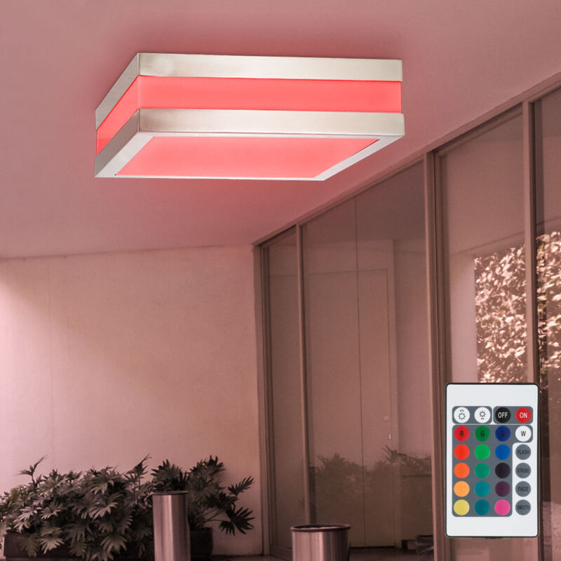 Descrizione Moderna plafoniera in acciaio inossidabile per uso esterno. Abbellisci e soprattutto dona luminosità alla tua area esterna con questa moderna plafoniera. Grazie alla classe di protezione IP44, questa lampada è protetta dagli spruzzi d'acqua e quindi predestinata per l'area esterna. Grazie a diversi colori, puoi decidere se vuoi aumentare l'atmosfera nel tuo giardino, ravvivare il tuo terrazzo o dare un tocco in più al tuo giardino porzione di stile. Con il telecomando incluso nella fornitura, puoi facilmente accendere e spegnere le tue luci di design e regolarle dal divano. I faretti LED consumano solo una quantità minima di elettricità e sono persino meno costosi dell'energia- luci a risparmio. Due luci LED RGB di alta qualità a risparmio energetico con telecomando per luce bianca e controllo RGB sono incluse nella fornitura. Dettagli lampada • Tipo lampada: plafoniera • materiale: acciaio inox lucido • paralume: plastica opale • grado di protezione: IP44
