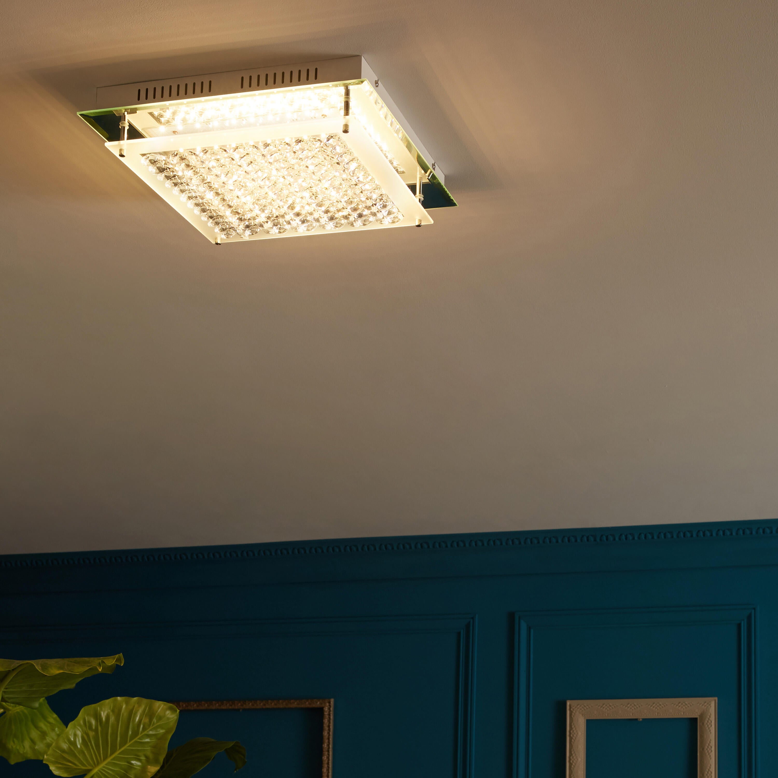 Per dare un tocco unico ai tuoi interni, scegli questa lampada da soffitto, una sottile combinazione di metallo cromato, specchio e vetro che porterà un tocco chic e senza tempo alla tua casa. Questo prodotto Inspire è integrato a LED. Grazie al telecomando, puoi variare l'intensità luminosa e il colore della luce, dal bianco caldo al bianco freddo, garantendoti così un'illuminazione personalizzata adattata alle tue esigenze. Se desideri un'atmosfera amichevole e una buona luce durante i pasti, scegli la luce bianca e l'illuminazione intensa. Al contrario, se desideri un'atmosfera calda e accogliente per i tuoi momenti di relax, abbassa l'intensità della luce e scegli una luce calda in tutta semplicità. Questo prodotto è disponibile in altre dimensioni.. LED integrato. Non necessita di manutenzione e sostituzione della lampadina