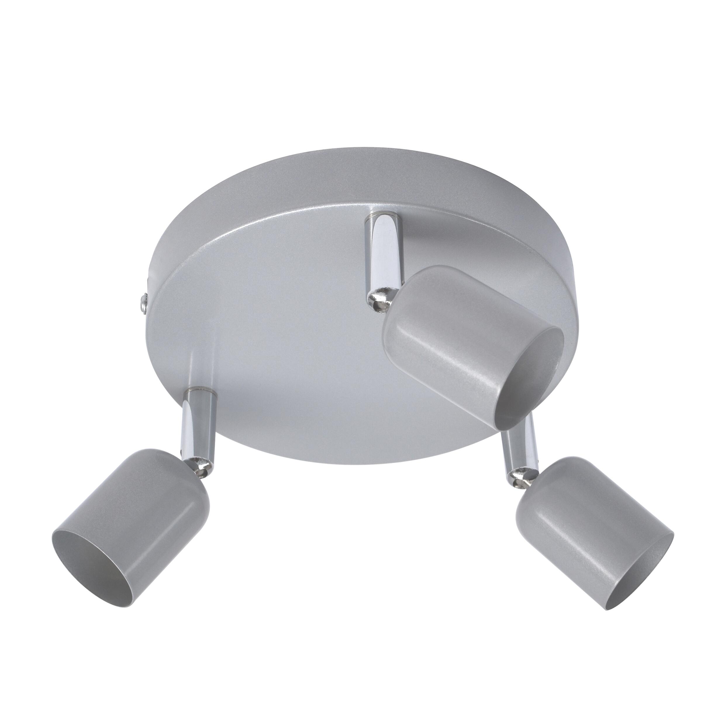 Struttura color grigio, diffusore in metallo colore grigio, dimensioni L 16 x H 9,9 cm, 3 lampadine non incluse, attacco GU10 a baionetta