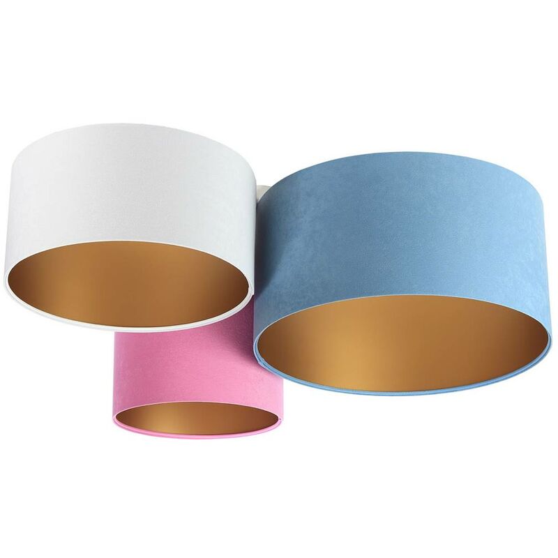 Lampada del soffitto trio blu, bianco, rosa, oro 3 x E27 L: 91 cm H: 30 cm Dimmessibile in CM: Altezza: 30, lunghezza: 91, Peso in kg: 2,3 Diametro ombrello: diametro 40 cm altezza 20 cm, diametro 50 cm 2. altezza 25 cm, diametro 30 cm di altezza Lampade contengono: No Tipo di lampada/versione: e27 Prestazioni massime in watt: 60 Dimmabile: Sì Classe di protezione: ip20 materiale per la casa: metal Colore: Black Materiale vetro/dispensa: tessile da velours (microfibra) su base in PVC. Colore di vetro/ombrello: blu, bianco, rosa, Gold Informazioni aggiuntive: Cavo di alimentazione trasparente nascosto nel fissaggio del soffitto