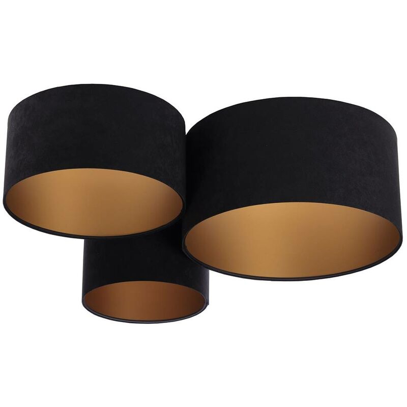 Lampada a soffitto trio nero oro 3 x e27 L: 91 cm H: 30 cm Dimmessibile Dimensioni in cm: altezza: 30, lunghezza: 91, peso in kg: 2.3 Diametro ombrello: diametro 40 cm altezza 20 cm, diametro 50 cm 2. Altezza 25 cm, diametro 30 cm 3 ° 30 cm di altezza < Lampade contengono: No Tipo di lampada/versione: E27 Prestazioni massime in Watt: 60 Dimmibile: Sì Classe di protezione: ip20 materiale per la casa: metal Colore: nero Materiale vetro/picchi: tessile da velours (microfibra) su base in PVC.: Cavo di alimentazione trasparente nascosto nel fissaggio del soffitto
