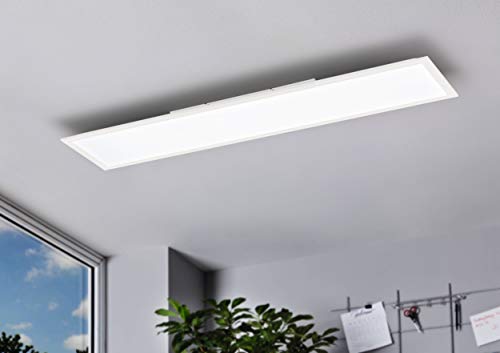 EGLO Plafoniera Led Bottazzo, Lampada da soffitto 100x25 cm, pannello ultrapiatto in alluminio e plastica color bianco, dimmerabile con telecomando, cambio di temperatura colore, lampada da soggiorno
