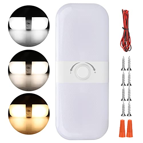 LED Plafoniera 12V per Camper, luci LED da soffitto camper dimmerabili con interruttore On/Off Luce interna cupola auto 3 colori con interruttore a manopola per camper rimorchio barca marina