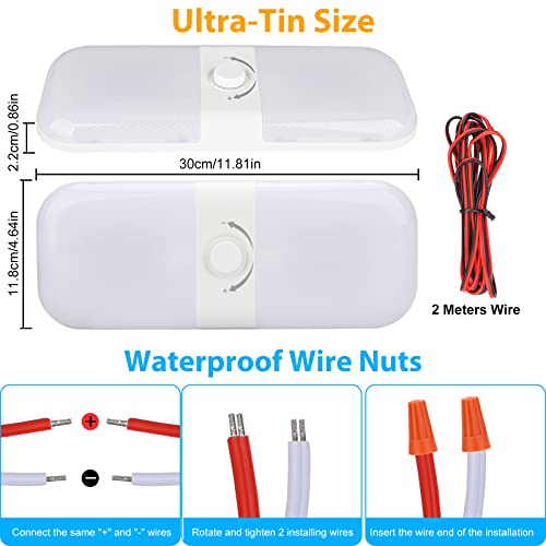 FACILE DA INSTALLARE: il montaggio in superficie è semplice e veloce, basta utilizzare 8 viti per montare la luce su una superficie piana, le viti saranno nascoste dietro i tappi dei fori, rendendo la parte superiore del camper più bella. Questa luce LED per camper ha un corpo ultra-sottile di 0,99 pollici, 4,6 "X11,78", che consente di risparmiare spazio interno. Sottile e resistente.