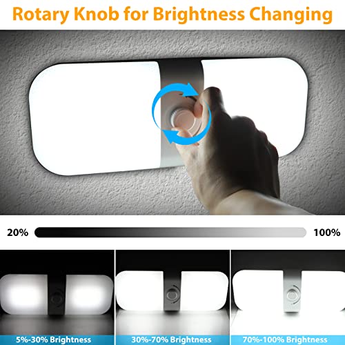 LUMINOSITÀ REGOLABILE: è possibile regolare facilmente la luminosità desiderata, grazie alla manopola rotante che consente di passare da 1 a 100% di luminosità. Grande funzionalità in qualsiasi area per l'illuminazione ed è ampiamente utilizzato come luce di ricambio ideale per auto, camper, roulotte, camper e barche marine.