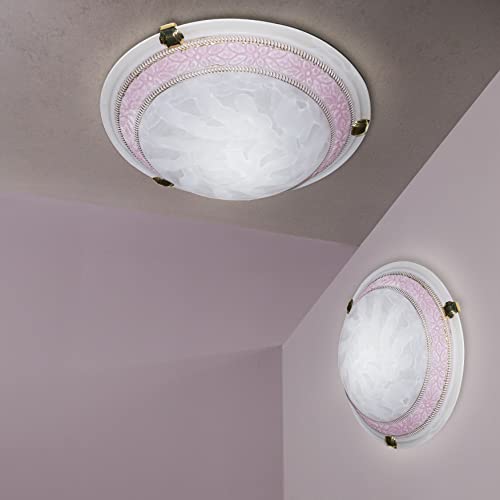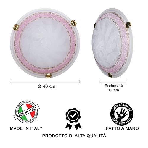 Plafoniera Capri In Vetro D40 Classica Con Gancio Oro, Plafoniere Soffitto Per Cameretta Bambini, Plafoniera Da Bagno (Rosa, Plafoniera D40)
