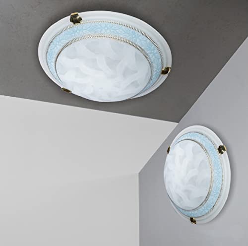 Plafoniera Capri In Vetro D40 Classica Con Gancio Oro, Plafoniere Soffitto Per Cameretta Bambini, Plafoniera Da Bagno (Azzurro, Plafoniera D40)