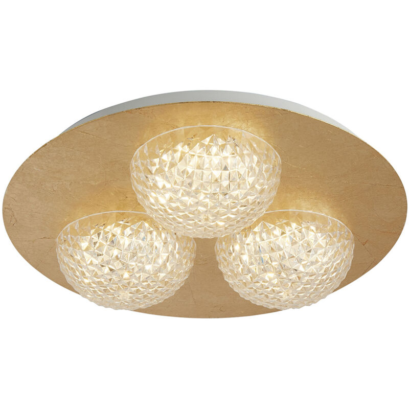 Collezione Celestia SPLENDORE MODERNO Unica e moderna, la lampada da incasso rotonda Celestia è rifinita in uno splendido oro verniciato. 3 mezze sfere in acrilico presentano un design in cristallo tagliato che proietta la luce dal LED integrata in un bagliore a motivi bianchi caldi. Ideale per ingressi, soggiorni e portici con soffitti bassi, può essere controllato anche con un dimmer. I LED consumano fino al 75% di energia in meno e durano fino a 20 volte di più rispetto alle lampadine a incandescenza.