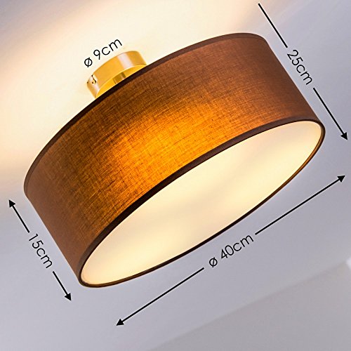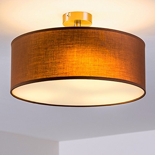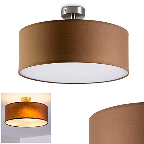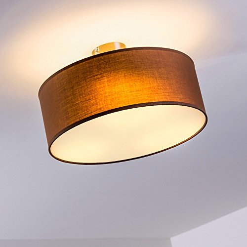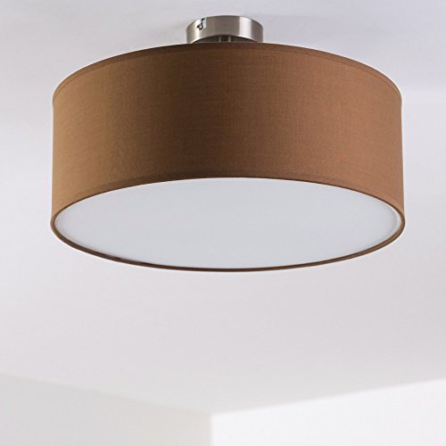 Plafoniera circolare paralume in tessuto marrone design moderno
