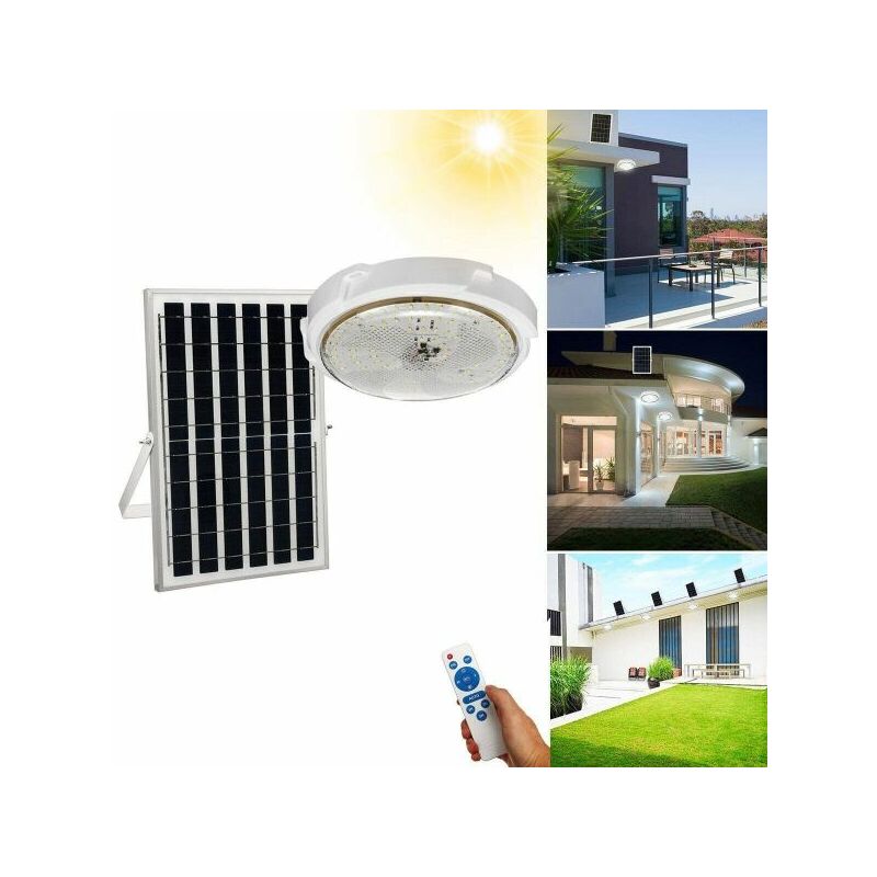 Descrizione prodotto Plafoniera lampada da soffitto pannello solare telecomando 200W 6500K FO-11-05 Plafoniera da soffitto con alimentazione solare. Varie modalità di illuminazione facilmente programmabili tramite telecomando. Specifiche 78 LED SMD Ricarica solare Luminosità regolabile Modalità temporizzazione Modalità crepuscolare Potenza: 200W Luce 6500K Diametro: 23cm circa Lunghezza cavo circa 5 metri Contenuto della confezione Plafoniera Pannello solare Telecomando Nota bene. Il design del pannello può leggermente variare