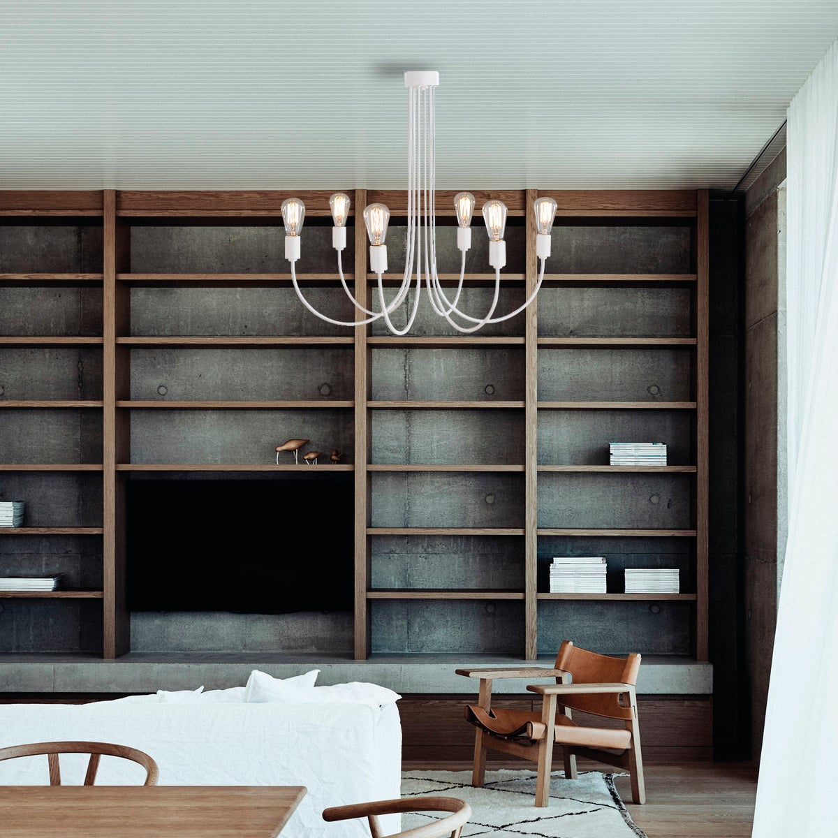Plafoniera in metallo caratterizzata da un design classico che diffonde gradevolmente la luce. Verniciata in colore bianco. Adatta a qualsiasi ambientazione classica ma anche moderna. Disponibile nelle versioni con diametro 60 centimetri (6xE27).. Ideale come luce diffusa per una stanza di dimensione 15-25 mq. Consigliato per zona giorno e zona notte. Prodotto 100% Made in Italy. Disponibilità ricambi garantita per 7 anni. Riparabilità garantita al 100% in ottemperanza ai principi di economia circolare