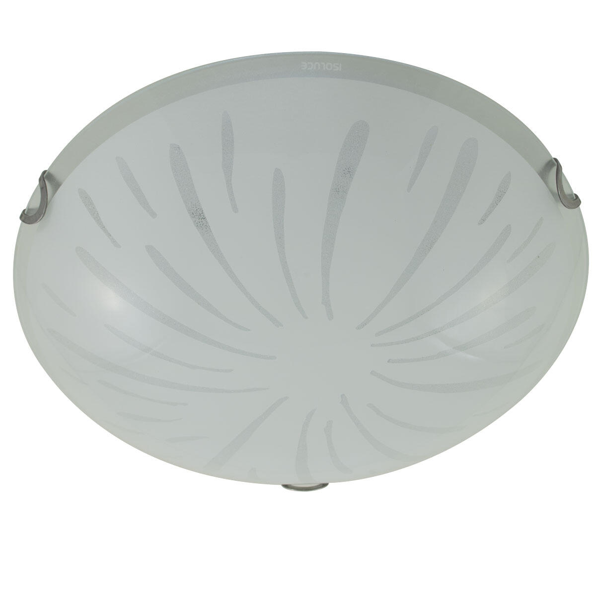Plafoniera cometa D500 Vetro serigrafato Bianco e granigliato Lucido estrerno con particolari in metallo cromati 3 PTL E 27 MAX 60W. Disponibilità pezzi di Ricambio