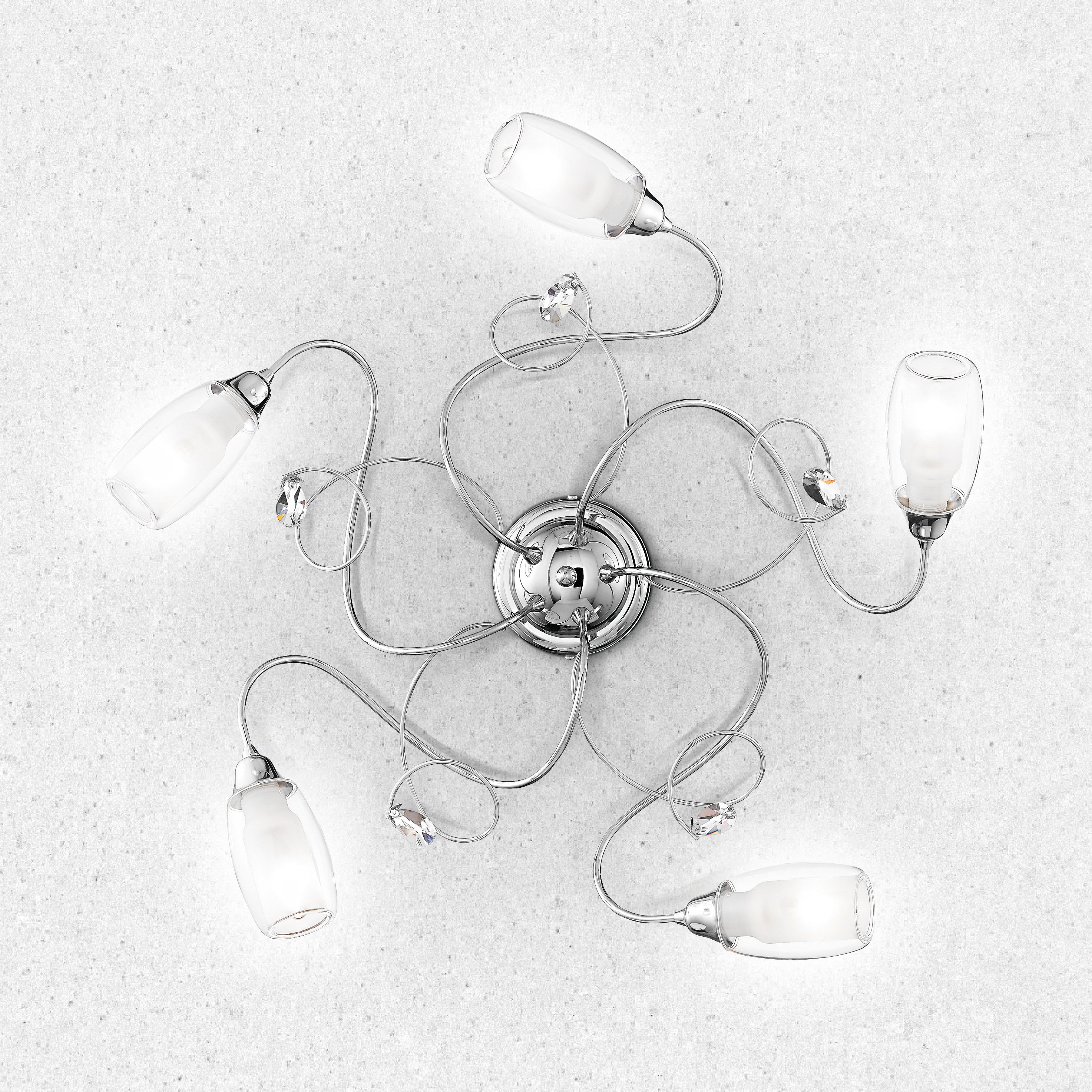 Diffusore in vetro soffiato, Ø 68 cm, 5 lampadine non incluse, wattaggio massimo 40 W. Ideale come luce diffusa per una stanza grande, oltre 20 mq. Consigliato per zona giorno. La luce diffusa garantisce un' illuminazione generale nella stanza