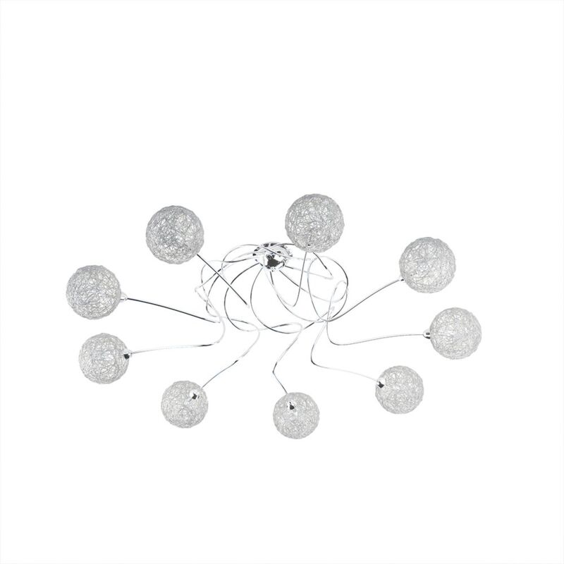 Collezione Willow LA LUCE CHE AVVOLGE Plafoniera 9 luci composta da struttura in metallo cromato, ogni luce da due sfere decorative concentriche in vetro.. Realizzate in filo di alluminio a forma di gomitolo, che crea un gioco di riflessi che richiama la creatività dell'arte. Willow è la luce che si adatta a ogni ambiente, dal salotto alla camera da letto, dallo studio alla cucina.Questo articolo è disponibile in diverse finiture e/o dimensioni. E' possibile indicarlo nell'apposito campo NOTE presente in conclusione di ordine oppure contattarci dopo aver effettuatol'ordine.