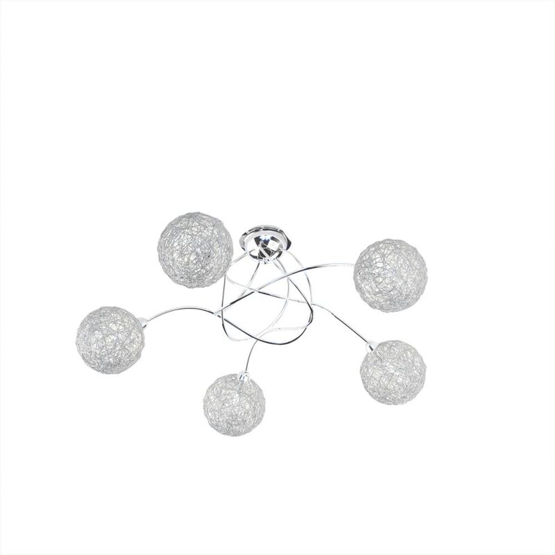 Collezione Willow LA LUCE CHE AVVOLGE Plafoniera 5 luci composta da struttura in metallo cromato, ogni luce da due sfere decorative concentriche in vetro.. Realizzate in filo di alluminio a forma di gomitolo, che crea un gioco di riflessi che richiama la creatività dell'arte. Willow è la luce che si adatta a ogni ambiente, dal salotto alla camera da letto, dallo studio alla cucina.Questo articolo è disponibile in diverse finiture e/o dimensioni. E' possibile indicarlo nell'apposito campo NOTE presente in conclusione di ordine oppure contattarci dopo aver effettuatol'ordine.