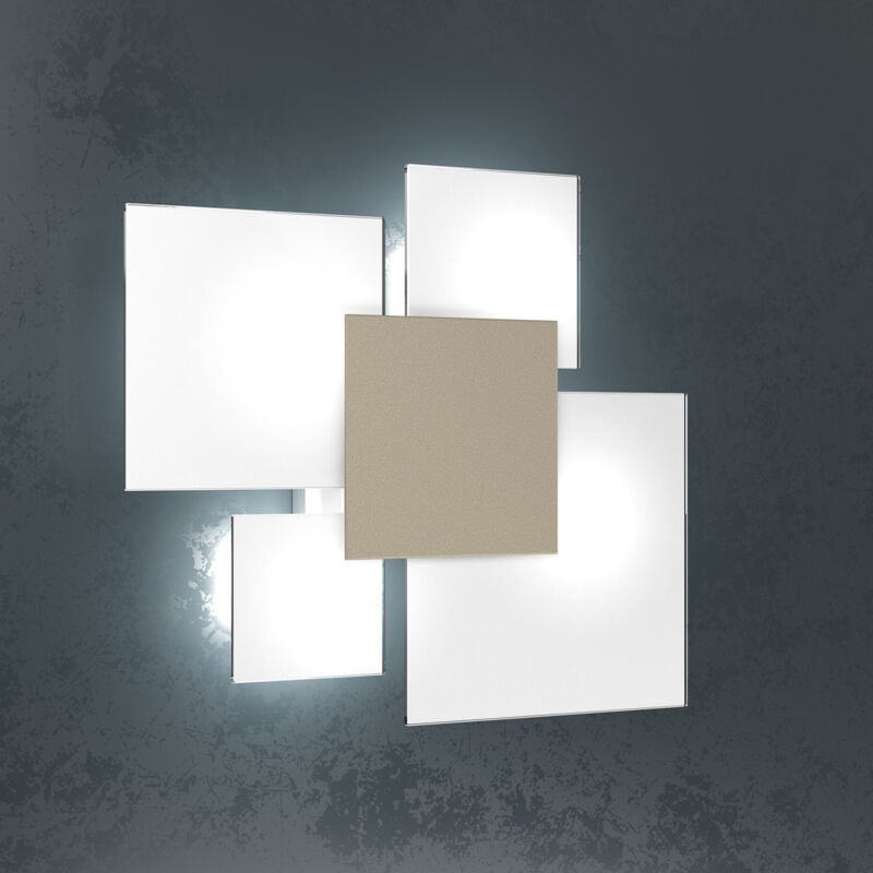 Collezione Upgrade UN'ILLUMINAZIONE DI LIVELLO SUPERIORE Applique/Plafoniera con struttura metallica verniciata finitura sabbia e piastra frontale disponibile in finitura bianca.. I diffusori sono in vetro lastra extrachiaro serigrafato bianco.Questo articolo è disponibile in diverse finiture e/o dimensioni. E' possibile indicarlo nell'apposito campo NOTE presente in conclusione di ordine oppure contattarci dopo aver effettuatol'ordine.