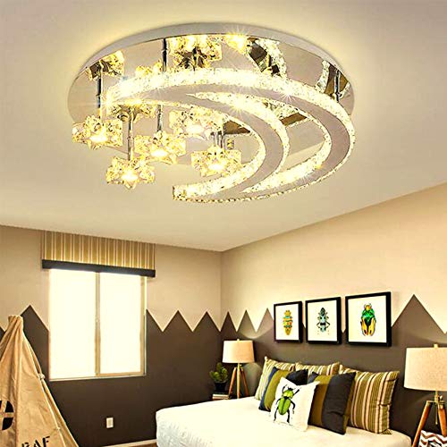 Plafoniera in Cristallo Lampada Da Soffitto A LED Dimmerabile Stelle Luna Lampadario Moderno Soggiorno Camera Da Letto Sala Da Pranzo Corridoio Illuminazione Da Interno Con Telecomando,60cm