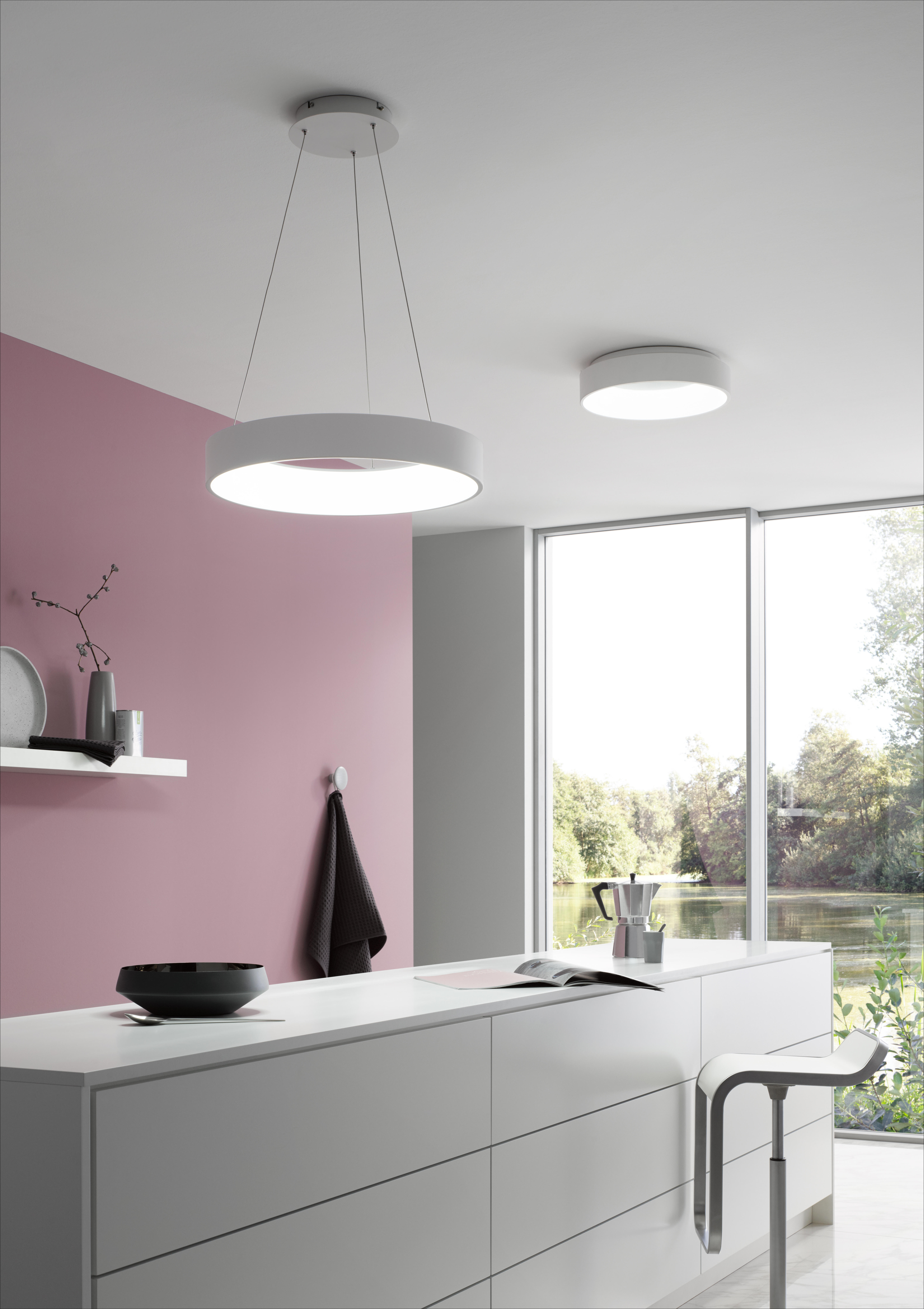 Lampada da soffitto dal design raffinato, conferisce all'ambiente un tocco di contemporaneità.Led integrato, non necessita di lampadina