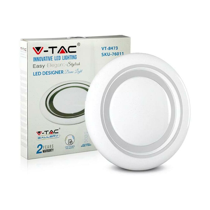 60W LED Plafoniera LED di design 3 in 1 con telecomando dimmerabile Rotonda SKU: 76011: VT: VT-8473 Specifiche tecniche Informazione generale Vitamedia 20 000 ore Dati elettrici Potenza 60W Tensione AC: 175-265V Frequenza 50/60Hz Fattore di potenza >0.9 Dati tecnici luce Fascio Luminoso° 120° Colore della luce 3 en 1 Temperatura di colore 3000K/4000K/6400K Flusso luminoso (lm) 4200 lm Indice di resa cromatica Ra >80 Dettagli corpo Colore Bianco Materiale PC, Metallo Forma Rotondo Funzionalità Sensor No Valutazione del IP IP20 Tempo innesco 100% 0.001 secondo Stabilità del colore Intensità luminosa, Cd 751.56 Cd Max. Numero cicli accensione / spegnimento >15000 Condizioni di lavoro Non adatto per luso in condizioni estreme. Condizioni normali di lavoro tra -20 ° + 45 ° Dimmerabile Si Dimensione Dimensioni 480 x 75 mm Dati del prodotto Numero dordine 76011 Numero di prodotto VT-8473 Pezzi per confezione 1 Peso 1,8 Volume 0,022346375 Pezzi per scatola 5 Codice EAN 3800157656597