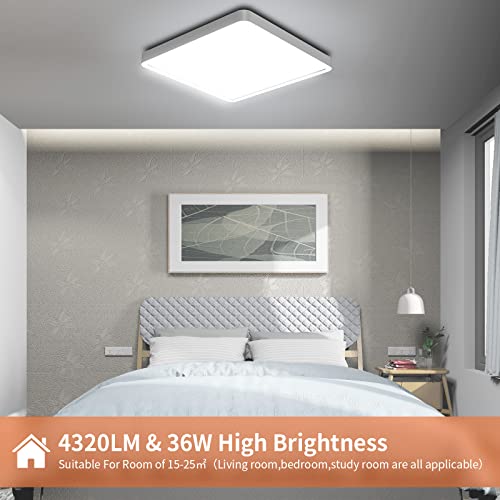 IAB Plafoniera LED Dimmerabile 36W 4320Lm Plafoniere Soffitto Luce Calda Neutra Fredda 3000K-6000K con Telecomando, IP44 Lampada da Soffitto Quadrata Moderna per Camera Cucina Bagno Garage 30x30x24cm