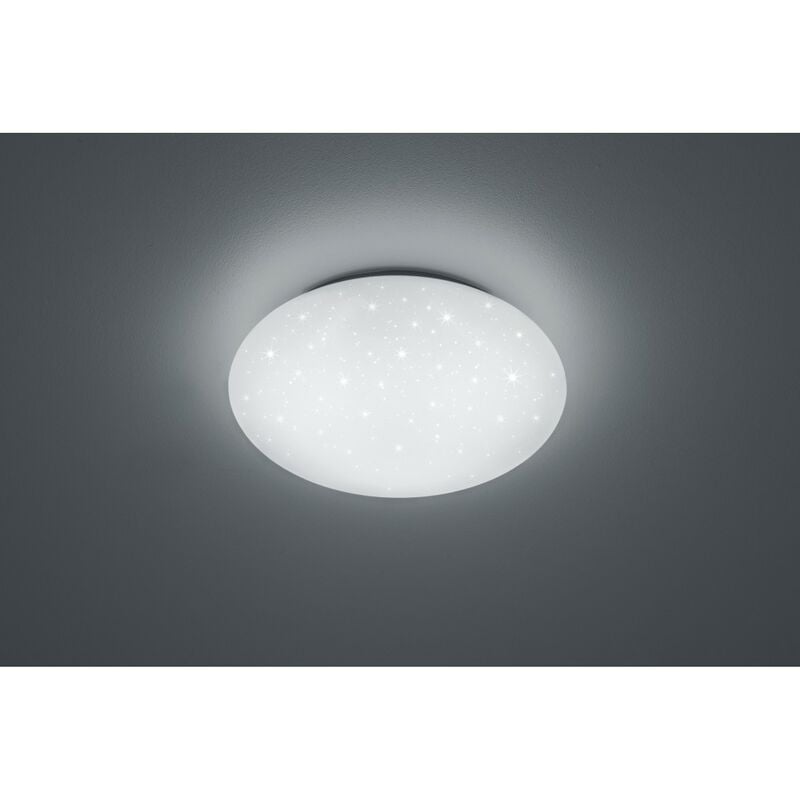 Plafoniera Led IP44 Dimmerabile Putz Bianco Glitter Ø37 cm Trio Lighting La lampada da soffitto PUTZ di Trio Lighting presenta una struttura rotonda realizzata in plastica finitura bianco glitterato con un diametro di 37 cm. Dotata di un modulo led integrato SMD LED da 15 watt, offre una luminosità di 1450 lumen con una temperatura di colore di 3000k (luce calda) ed è dimmerabile. Con il grado di protezione IP44, questa plafoniera offre una buona resistenza contro corpi estranei e spruzzi d'acqua provenienti da ogni direzione. Economica, pratica e versatile, questa lampada è perfetta per il bagno, il corridoio ma anche per ambienti esterni come la terrazza o l'ingresso. Caratteristiche: Struttura rotonda in plastica finitura bianco glitterato Diametro: 37 cm Modulo led integrato SMD LED da 15 watt Luminosità: 1450 lumen Temperatura di colore: 3000k (luce calda) Dimmerabile Grado di protezione IP44 Adatta per il bagno, il corridoio e ambienti esterni Disponibile anche nella variante