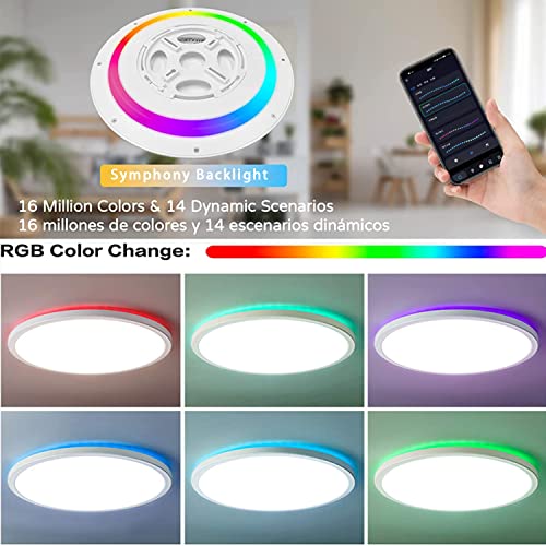 Plafoniera LED Dimmerabile 24W, Lampada da Soffitto Intelligente WiFi RGB+CCT con Controllo APP, Compatibile con Alexa Google Home Siri,Ø30cm,Bianco,Rotondo, Luce per Camera da letto Soggiorno Cucina