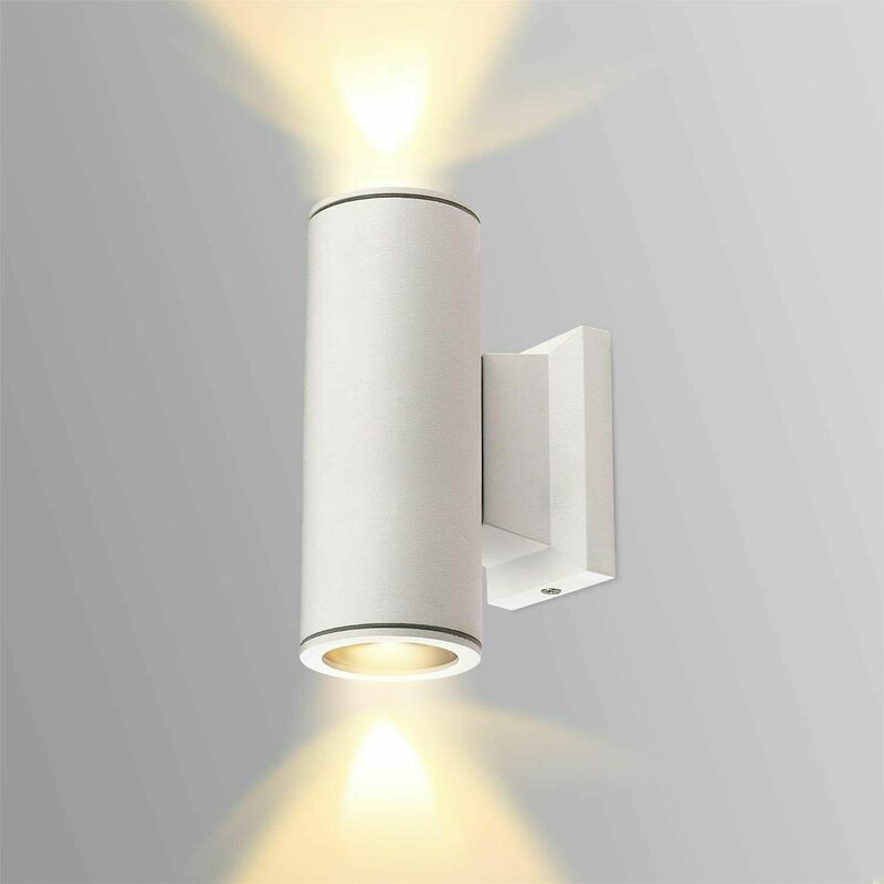 Con questa bella lampada da esterno puoi valorizzare visivamente le pareti. L'effetto di luce che risplende verso l'alto e verso il basso crea un'atmosfera meravigliosa intorno alla tua casa e al tuo giardino. Grazie all'impermeabilità IP65, le luci sono protette in modo ottimale dalla pioggia e dagli influssi esterni, in modo che le nostre luci non siano influenzate dalle condizioni climatiche e possano essere utilizzate all'interno e all'esterno. È una lampada da parete ideale per esterno. Adatto per terrazza, balcone, giardino, soggiorno, camera da letto, cucina, corridoio, scala, sala da pranzo, ecc. L'attacco GU10 è estremamente pratico, la luce si adatta a pareti esterne e interne, sia per l'illuminazione da esterno che come luce ausiliaria. Struttura completamente in alluminio pressofuso anti-corrosivo con parabole interne riflettenti in alluminio. Monta due portalampade per faretti con attacco GU10 (incluse in confezione in omaggio da 5W led, che corrispondono ai 40W delle