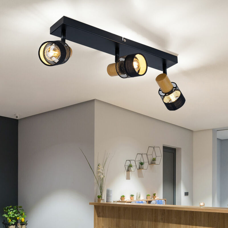 Descrizione Forte nelle combinazioni! La combinazione di legno e metallo conferisce al materiale piuttosto classico un tocco moderno. Il linguaggio formale calmo e chiaro dei faretti supporta anche lo stile purista della luce. Le lampadine non sono incluse nella fornitura. Particolare lampada • Tipo di lampada: plafoniera • Materiale: ferro/acciaio, legno • Colore nero • punti in movimento • Classe di protezione: 1 • Grado di protezione: IP20 • Lunghezza x larghezza x altezza in cm: 45x8x17 • Prese: 3x E14 • Lampadina inclusa: No • Potenza della lampadina: massimo 3x 28 watt • Alimentazione: 230V, 50Hz