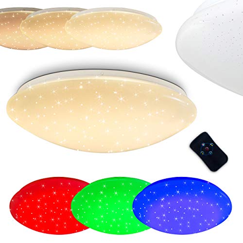 Plafoniera LED Foxes, plafoniera in metallo dimmerabile in bianco, con funzione di luce notturna, 24 Watt, 1650 Lumen, 3000 K, con cambiacolori RGB e telecomando, effetto cielo stellato