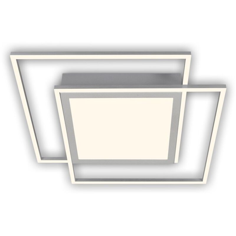 Plafoniera Frame Center prodotta dal brand Briloner. Oltre al suo bell'aspetto, la plafoniera è caratterizzata dalle sue sorgenti di luce LED commutabili singolarmente. Con l'interruttore a parete, sia la cornice con lucemedia può essere accesa contemporaneamente, o solo la cornice a LED può brillare, mentre la luce media è spenta. L'operazione avviene tramite un normale interruttore di luce, che deve essere premuto più volte per svolgere lefunzioni una dopo l'altra. La luce dell'illuminazione del soffitto a LED ha un valore di 3000 Kelvin bianco caldo. I 5800 lumen e 51 watt offrono molta luce in soggiorno, camera da letto, corridoio o in cucina. La plafonieramisura 515x515x65 mm (LXPXA). Il colore del prodotto è cromo.