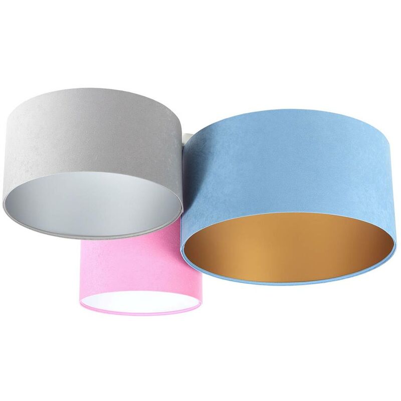 Lampada a soffitto trio blu, grigio, rosa, argento, oro 3 x e27 L: 91 cm H: 30 cm Dimmessibile Dimensioni in cm: altezza: 30, lunghezza: 91, Peso in kg: 2,3 Diametro ombrello: diametro 40 cm altezza 20 cm, diametro 50 cm 2. altezza 25 cm, diametro 30 cm 3. altezza 30 cm lampada contenuta: no Tipo di lampada/versione: E27 Prestazioni massime in Watt: 60 Dimmabile: Sì Classe di protezione: ip20 materiale per la casa: metallo colore: schwarz Materiale vetro/picchi: tessile da velours (microfibra) su base in PVC. Colore di vetro/ombrello: blu, grigio, rosa, argento, oro Informazioni aggiuntive: Cavo di alimentazione trasparente nascosto nel fissaggio del soffitto