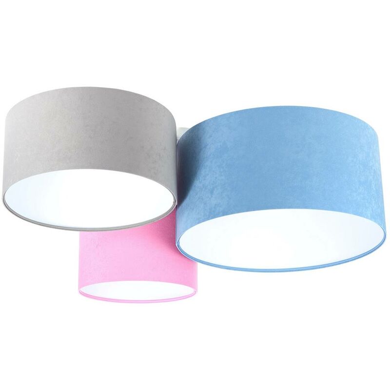 Lampada del soffitto trio blu, grigio, rosa, bianco 3 x E27 L: 91 cm H: 30 cm Dimmessibile in CM: Altezza: 30, lunghezza: 91, Peso in kg: 2,3 Diametro ombrello: diametro 40 cm altezza 20 cm, diametro 50 cm 2. altezza 25 cm, diametro 30 cm di altezza Lampade contengono: No Tipo di lampada/versione: e27 Prestazioni massime in watt: 60 Dimmabile: Sì Classe di protezione: ip20 materiale per la casa: metal Colore: Black Materiale vetro/dispensa: tessile da velours (microfibra) su base in PVC. Colore vetro/ombrello: blu, grigio, rosa, White Informazioni aggiuntive: Cavo di alimentazione trasparente nascosto nel fissaggio del soffitto