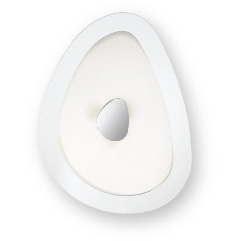 Montatura in metallo smaltato bianco. Diffusore con vetro trasparente serigrafato in bianco. Elemento centrale fissa vetro in metallo cromato. L 300 x H 230 x P 70 mm max 2 x 60W E27 IP:20