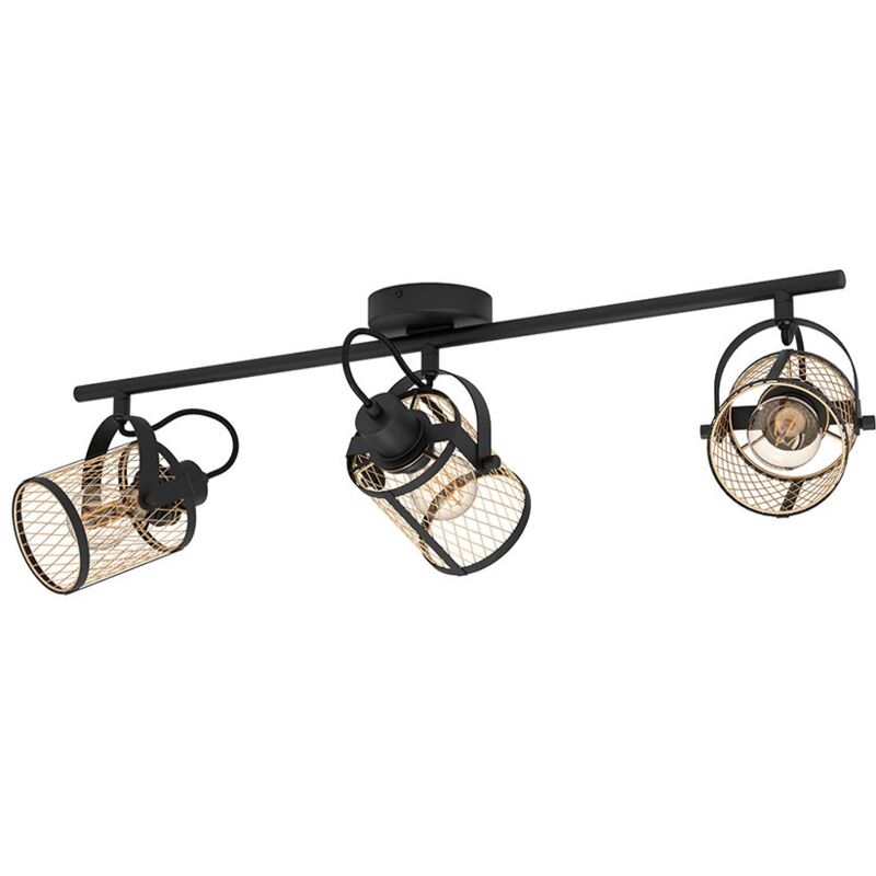 Collezione Dellow LA LUCE CHE SORPRENDE CON IL SUO DESIGN La plafoniera DELLOW è composta da tre paralumi mobili in metallo nero con una sottile lamiera stirata in ottone spazzolato.. La griglia dei paralumi crea un intrigante gioco di luci e ombre quando la luce è accesa. Questo plafone si armonizza perfettamente con stili di arredamento moderno e si ispira elegantemente alla popolare tendenza dei faretti grandi e vistosi. Offre un'illuminazione ideale nell'ambiente, che sia nel soggiorno, nella camera da letto, nel corridoio o nella sala da pranzo. Le lampadine a filamento presenti nell'immagine non sono incluse nella consegna. Per la lampada è adatta qualsiasi lampadina con attacco E27.
