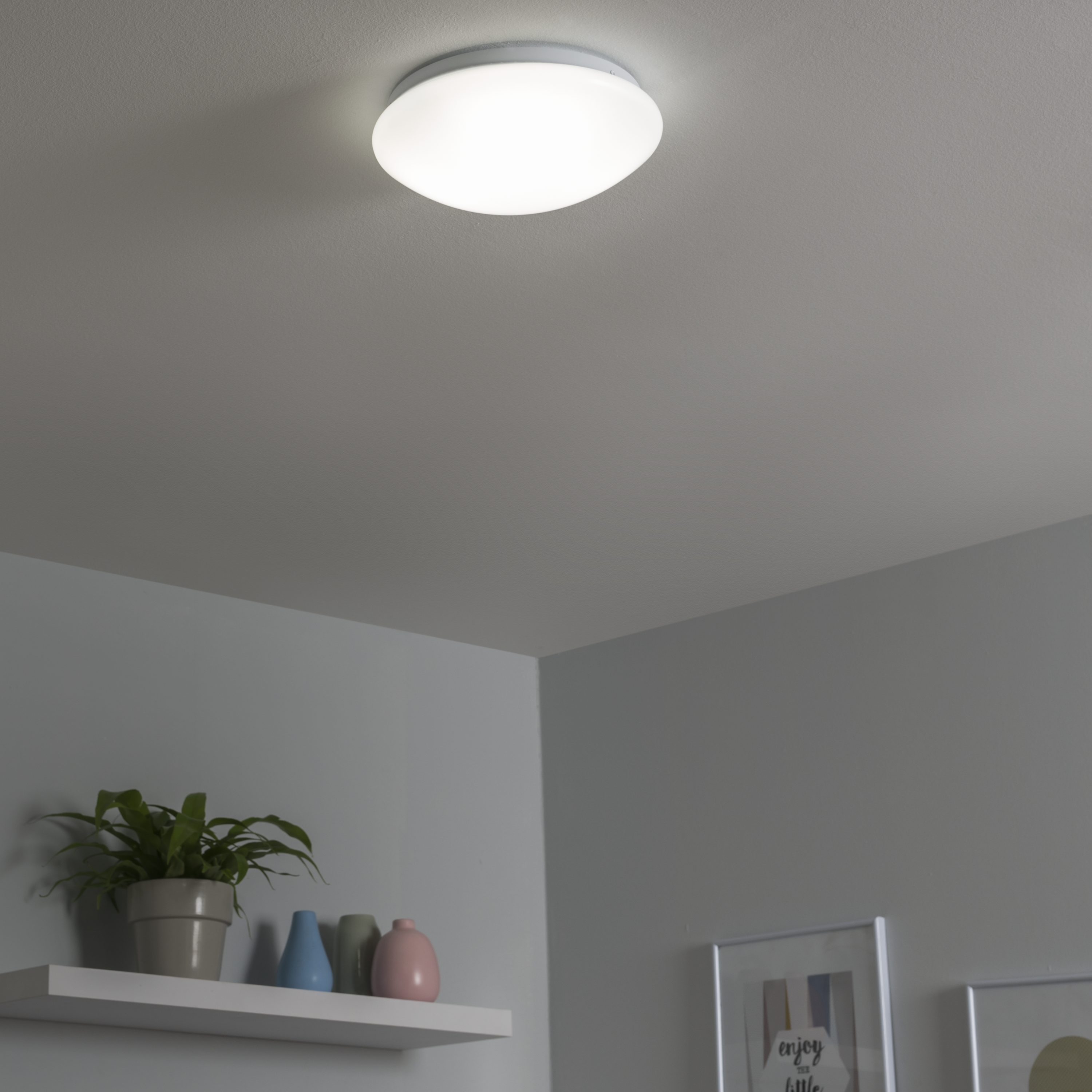 Lampada da soffitto Moon Led D25cm. Potenza massima per luce 12w, 1200 LM. Materiale plastica. Colore bianco.