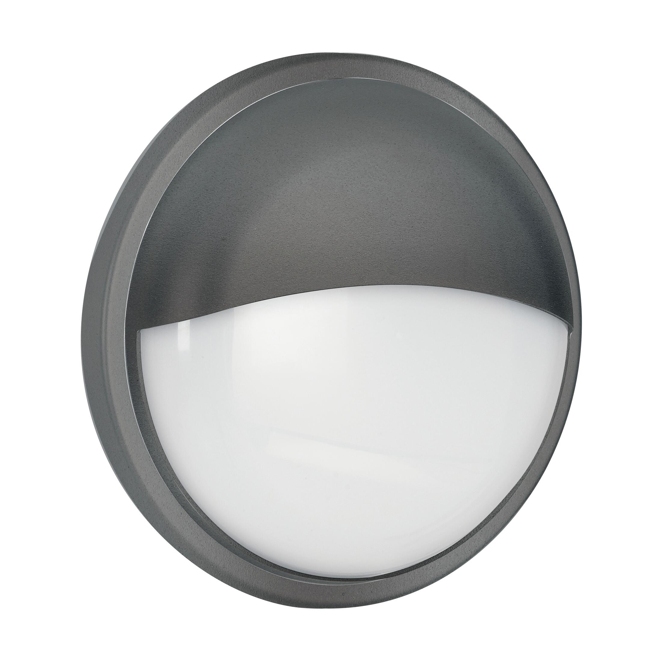 Plafoniera LED integrato materiale base PP antracite con diffusore opale PC. Ideale per terrazze, portici e accessi di garage. IP65 Indicato per luoghi esterni esposti a getti d'acqua diretti e a penetrazione di polveri sottili. Tecnologia LED, soluzione ecocompatibile e ideale per ridurre i consumi